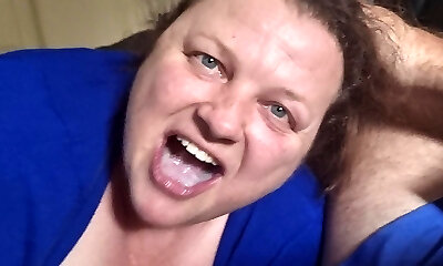 Mature BBW sucking dick and get cum on hooter