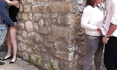 A gang of hot chicks from Germany have a naughty time with two loaded cocks