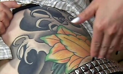 Sexy busty tattoo artist Emily Parker was touching up some tattoos on a client.