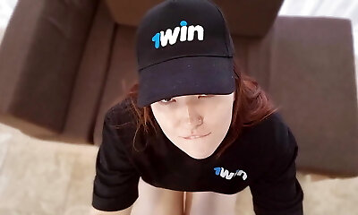 Teenager English teacher in sexy lingerie gives hand job and thigh job
